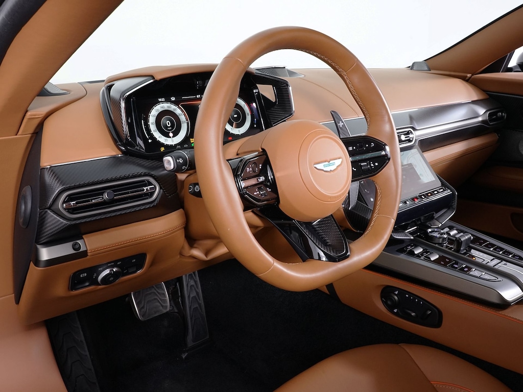 Q Casino Royale 2025 Aston Martin Vanquish V12 RWD ZF 8-Speed Automatic 5.2L V12 Turbocharged DOHC 48V 824hp Q Centenary Saddle Tan w/Leather & Alcantara Seat Trim or Semi-Aniline Leather Seat Trim, 2x2 Twill Gloss Black Carbon Fiber Lower Body Exterior Package, Adaptive suspension, Automatic temperature control, Brake assist, Contrast Stitching, Electronic Stability Control, Extended Exterior Body Package, Heated front seats, Heated Sports Plus Seats, Leather & Alcantara Seat Trim, Navigation System, Remote keyless entry, Satin Dark Chrome Interior Jewellery, Wheels: 21" Star Spoke Gloss Black Diamond Turned.