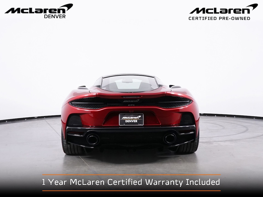 Certified. Amaranth Red 2025 McLaren GTS TechLux RWD 7-Speed Automatic V8 20" x 8.0" Front & 21" x 10.5" Rear 10-Twin-Spoke Wheels, ABS brakes, Bowers & Wilkins 12-Speaker Audio System, Brake assist, Cabin Air Purification with Pollen Filtration, Carbon Ceramic Brakes with Black Calipers, Compass, Electronic Stability Control, Exterior Parking Camera Rear, Front dual zone A/C, Full LED Headlights with Static Adaptive Functionality, Heated door mirrors, Illuminated entry, Low tire pressure warning, Luggage Retention Strap, Navigation System, Painted Ignition Key, Panoramic Privacy Tinted Glass Roof, Power Opening and Closing Glazed Rear Tailgate, Premium Pack, Remote keyless entry, Stealth Badge Pack, Traction control.
