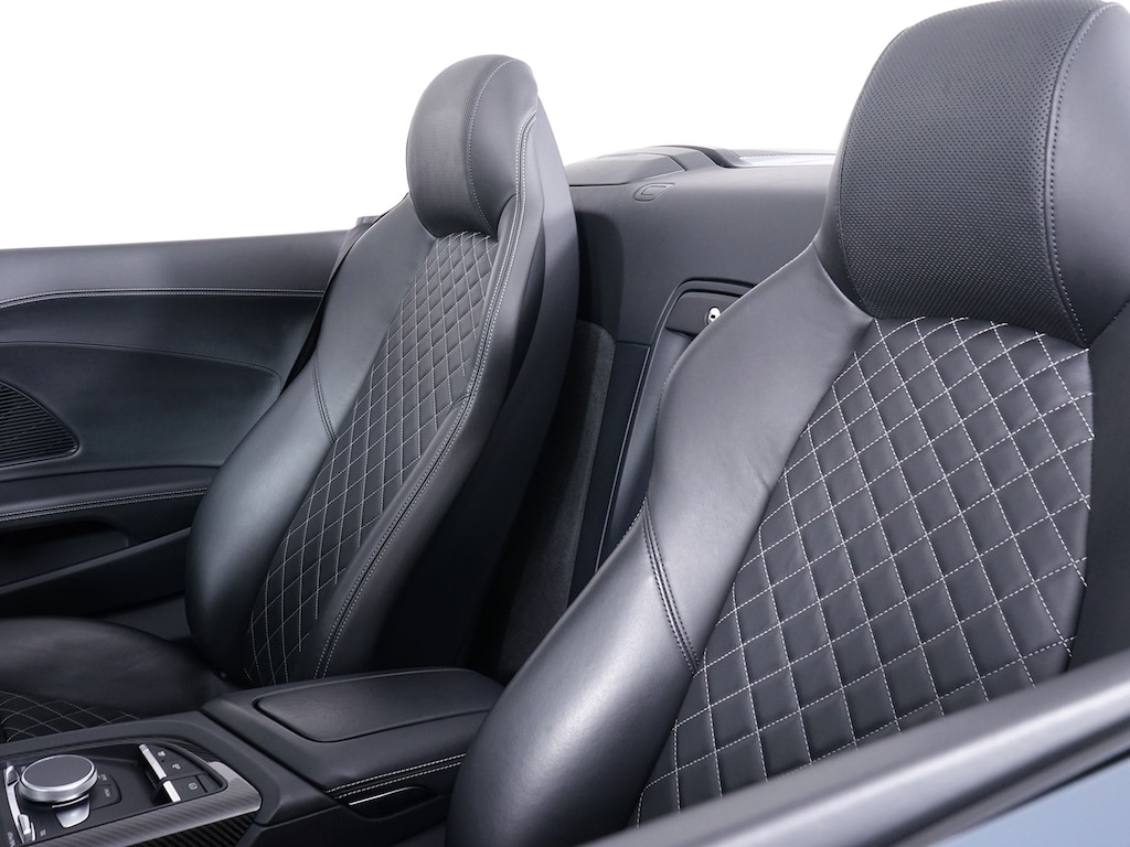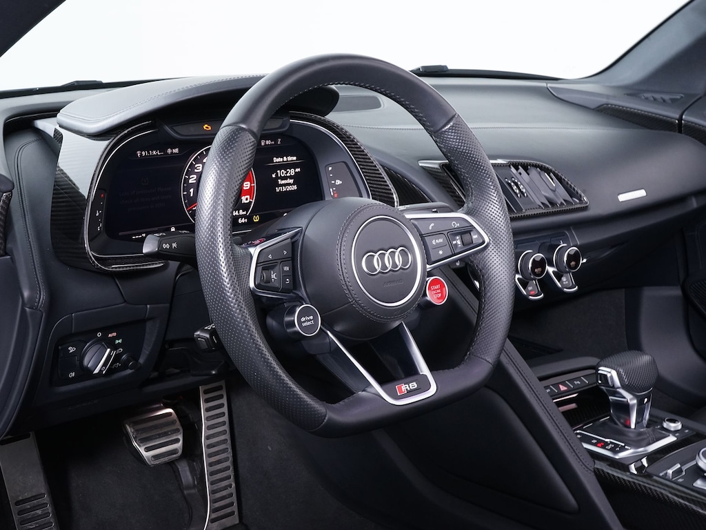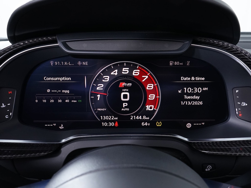 Kemora Gray Metallic 2020 Audi R8 5.2 quattro quattro 7-Speed Automatic S tronic 5.2L V10 FSI DOHC Black/Rock Gray Stitching w/Fine Nappa Leather Seat Trim or Diamond Stitched Seat Trim, 13 Speakers, Adaptive suspension, Air Conditioning, Brake assist, Carbon Exterior Package, Carbon Interior Package, Carbon Sigma Sideblades, Contrast Stitching, Diamond Stitch Leather Package, Diamond Stitched Seat Trim, Electronic Stability Control, Full Leather Package, Heated front seats, Heated Front Sport Seats, Illuminated entry, Navigation system: MMI Navigation plus, Remote keyless entry, Wheels: 20" 10-Spoke-Y Design Forged High-Gloss.