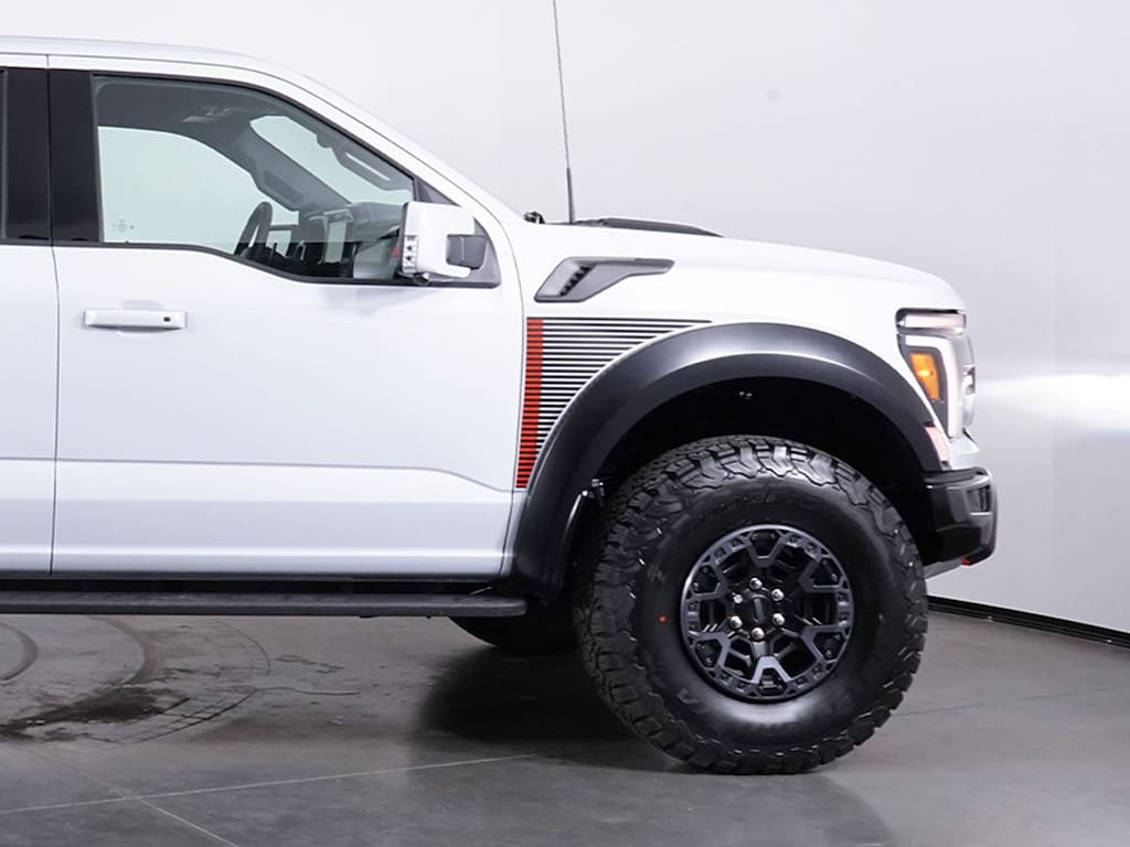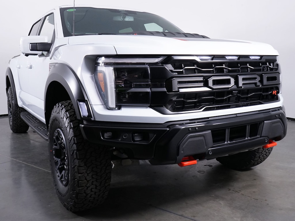 Space White Metallic 2025 Ford F-150 Raptor 4WD 10-Speed Automatic 5.2L V8 4WD, 14 Speakers, Automatic temperature control, Brake assist, Code Orange Front Tow Hooks, Code Orange Stitching Doors & Instrument Panel, Dual Valve Shocks, Electronic Stability Control, Equipment Group 803A Raptor R, Heads-Up Display, Heated front seats, Heated rear seats, Interior Code Orange Raptor R Badging, Lane Departure Warning System, Leather Trimmed Seats, Modular Front Bumper, Navigation system: Connected Navigation, Raptor R Badge Tailgate Applique, Raptor R Exterior Graphics, Raptor R Exterior Theme, Raptor R Interior Theme, Raptor R Unique Grille, Raptor R Unique Hood Vent w/R Badge, RECARO w/Code Orange Stitching Front Seats, Removes 2KW Pro Power Onboard, Tough Bed Spray-In Bedliner, Twin Panel Moonroof, Unique Carbon Fiber Appliques, Upgraded Dual Exhaust, Ventilated front seats, Wheels: Raptor R Unique 17" Forged Aluminum.