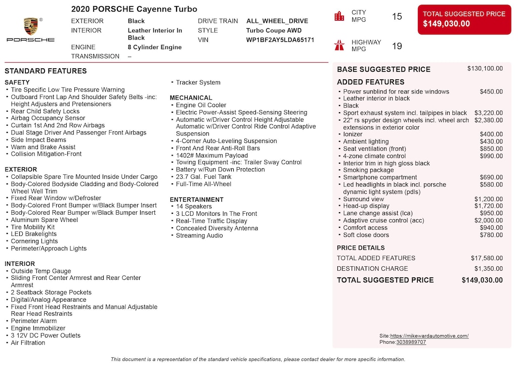 Black 2020 Porsche Cayenne Coupe Turbo AWD 8-Speed Automatic with Tiptronic 4.0L V8 Adaptive Cruise Control, Adaptive suspension, Brake assist, Burmester 3D High-End Surround Sound System, Electronic Stability Control, Exterior Parking Camera Rear, Front Seat Ventilation, Head-Up Display, Interior Package in High-Gloss Black, Lane Change Assist (LCA), Porsche InnoDrive w/Adaptive Cruise Control, Power Liftgate, Sport Exhaust System incl. Tailpipes in Black, Wheels: 22" RS Spyder Design.